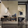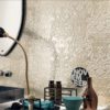 В роли декораций в данной коллекции выступает ретифицированная плитка Beige Experience Wall Impronta, изготовленная из белой глины в формате 32х96,2 см. В нее вошел гладкий кафель Crema, модули с бархатистой поверхностью Crema Velluto, плиты с 3D эффектом: Inciso Crema Velluto, украшенные объемными полосками разной ширины и высоты, Cubo Crema Velluto, оформленные геометричесим рисунком из шестиугольников, Royal Crema и Royal Crema Lumiere Decoro с одинаковым узором из классических виньеток, с той разницей, что последний модуль имеет сверкающую поверхность. В серию вошли и бордюры, а также угловые элементы к ним.