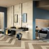 6) acidato lappato satinato (сатинированная, полуполированная поверхность с травлением): окрашенный в массе грес форматов 60х60, 60х120, 20х120 см только в расцветке Crema Imperiale;